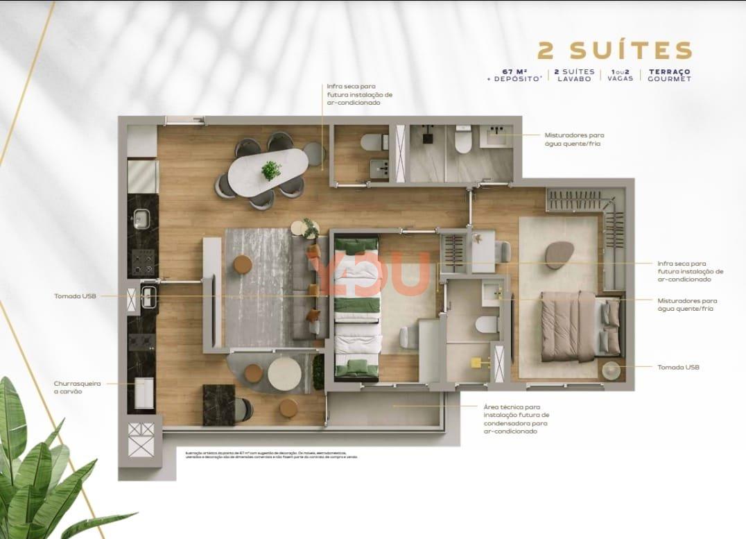 Tipologia: 2 Suítes nos apartamentos de 67m2 e 73m2* (com Deposito Privativo*)