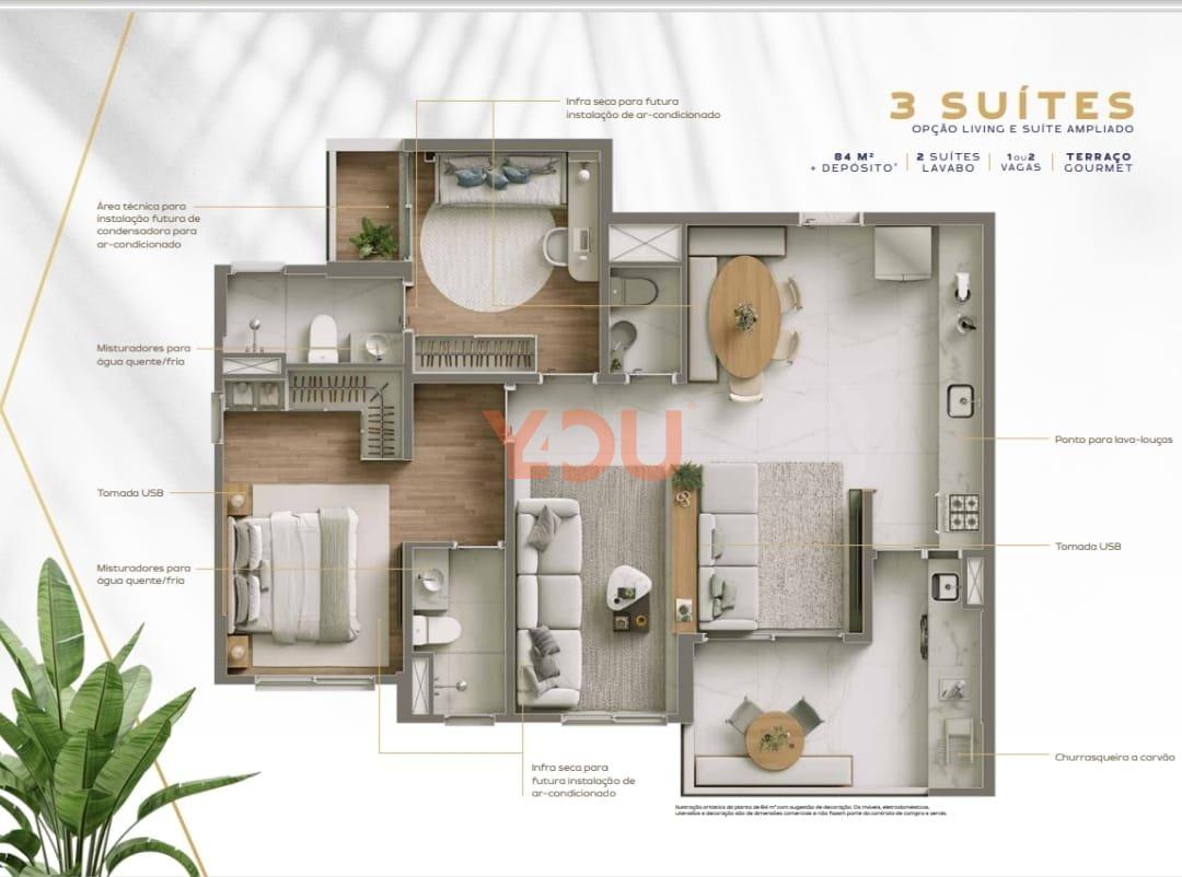 3 Suítes nos apartamentos de 84m2 e 90m2* (com Deposito Privativo*
